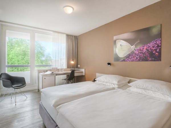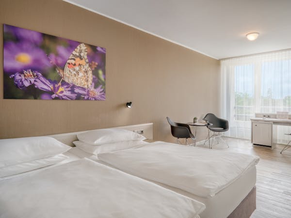 Our Superior rooms with twin bed offer a balcony, high-quality beds and a functional work area with WIFI. Unlimited free mineral water is available in our snack store. (bed size 1.00 × 2.00 m per mattress) - The room pictures shown are exemplary and non-binding for the hotel.